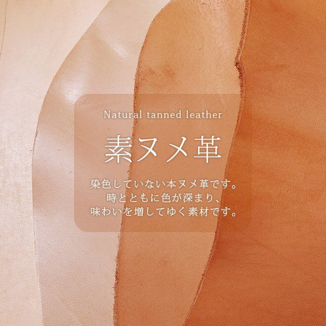 【商品説明】 ●素材:牛革 【素ヌメ革素材について】 ヌメ革とは植物タンニンでなめした革 のことを呼ぶことが多いですが、 その中でも染色を施さずに革本来の風合い を生かし、なめされたものがこの素ヌメ革です。
