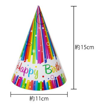 パーティーハット 三角帽子 レインボーバースデー 8個入り 紙製 カラフル コーンハット お誕生日会 ファーストバースデー パーティーグッズ 【あす楽】