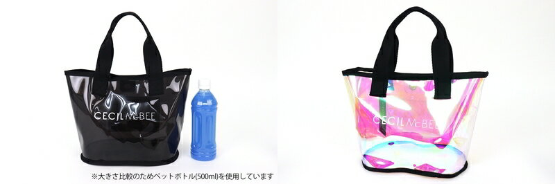 CECIL McBEE green セシルマクビー グリーン レディース カートバッグ クリアトートバッグ ラウンドバッグ ビニールバッグ ブラック&オーロラカラー ロゴプリント 2022 春夏 新作 ゴルフ