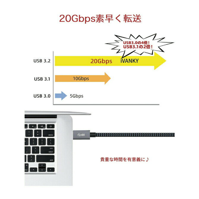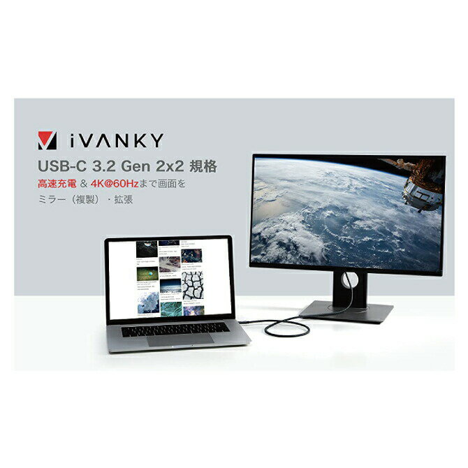 iVANKY VBD10 1m Grey & Black USB-C 3.2 Gen 2x2 Cable USB C to USB C Type-C - Type-C ケーブル タイプC eMarker 高速充電 映像出力 100W/5A PD QC AFC 20Gbps データ転送 スマホ スマートフォン タブレット アクションカメラ 送料無料